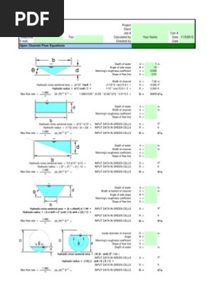 Replace the error-prone spreadsheet process for. This spreadsheet uses the Manning formula to calculate the flow conditions in an open channel acting under gravity only. Calculation of slope mass-flow or mean velocity of flow Reynold- and Froudenumber.